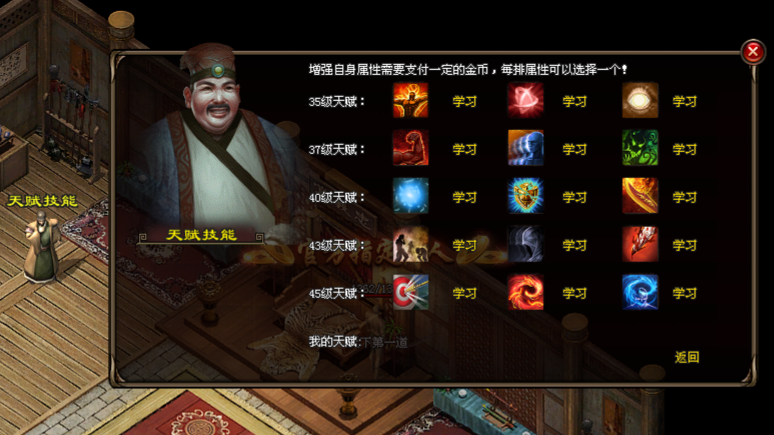 版本的核心是天赋技能系统。玩家在达到指定等级后可前往龙城皇宫偏殿,通过天赋技能NPC学习各类专属技能。全职业共分三大天赋流派,每种流派包含8种天赋技能,支持自由搭配与重置。