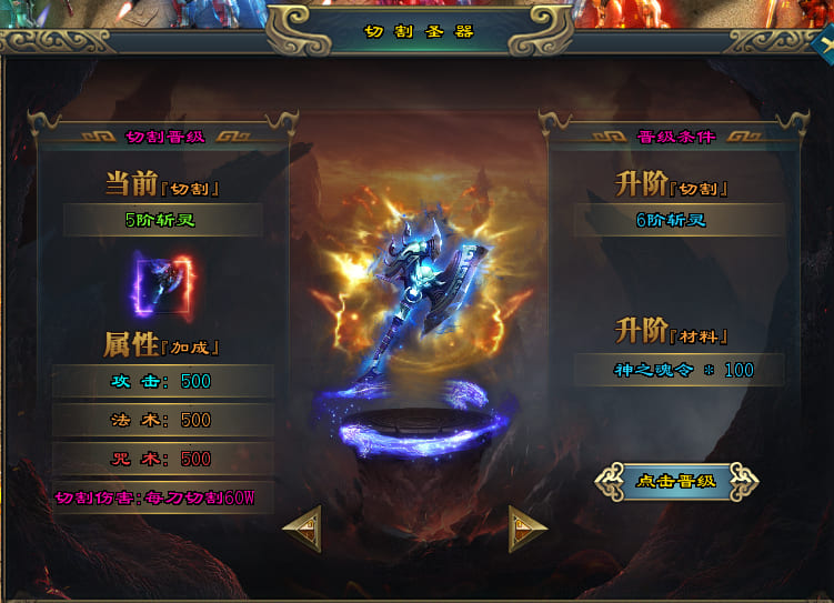 传承神器系统是本版本的另一大亮点。玩家通过击杀怪物获取材料,交给传承神器 NPC 回收后即可积累经验。随着神器等级提升,角色能获得攻速、全属性和破复活属性等强力加成。全套神器养成完成后,玩家将拥有显著优势,成为真正的强者。