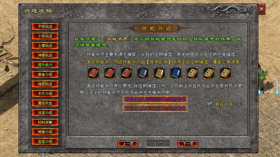 - 前期:领取免费礼包,击杀野外精英怪,收集技能书页与初级装备。